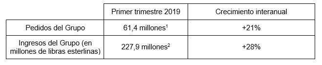 - Los pedidos del Grupo aumentaron un 21%[1] hasta los 61,4 millones en el primer trimestre sobre una base comparable, gracias a su modelo híbrido que consiste en la combinación de marketplace y de servicio de reparto.