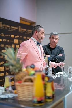 Asimismo, en el marco del Concurso Camarero del Año, Luis Carlos Martín Sanz, miembro del jurado, ofreció una masterclass titulada "Eleva los cócteles con tu zumo Juver: secretos de mixología con sabor". Ante los asistentes, Martín Sanz preparó un trago corto con un toque cítrico en homenaje a Murcia, utilizando la crema de Jeréz, Campari, Martini y el distintivo zumo de naranja de Juver Selección La combinación resultó en una experiencia única, fusionando sabores y aromas de manera perfecta.