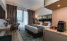 Puertas adentro el hotel apuesta por una decoración contemporánea, con predominio de tonalidades neutras, coordinadas con gusto para conseguir una atmósfera sin estridencias. Andreas Neudham, diseñador de cabecera de Leonardo Hotels, firma el interiorismo de la nueva apuesta barcelonesa del grupo. De su mano, las suites de la décima planta destilan moderna sofisticación; las habitaciones superiores sacan el máximo partido de su privilegiada inserción en los corners del edificio; y las habitaciones comfort reproducen el mismo estilo moderno y confortable que impregna el conjunto del hotel.