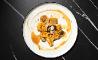 La pasta casera hecha diariamente en el restaurante, es otro de sus puntos fuertes, con un recetario de autor donde se emplean distintos tipos de pasta, como gnocchis, rigatones, plin, raviolis, paccheri o linguine. Completan la oferta unos entrantes espectaculares, como burrata envuelta en oro, carpaccio de gamba roja, capesante, unas vieiras asadas con crema de azafrán, apio y aceite de romero; o una selección de embutidos y quesos italianos muy exclusivos y desconocidos, seleccionados personalmente por el chef. La propuesta está diseñada bajo un prisma de cocina italiana contemporánea creada a partir de la mejor materia prima del mercado, mucha de la cual la importan directamente desde Italia.