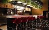 El gran protagonista del restaurante Leonardo es, sin duda, el horno de leña. Es el punto de referencia del local y está situado en el centro de la zona de barra, donde se han reducido el juego cromático a blanco y negro a partir de la inversión del color de las vetas de la encimera de la barra y su frontal. Se aprecian detalles cálidos que conectan con los elementos dorados de los laterales.