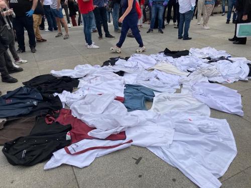 El acto de hoy, promovido por FACYRE y ACYRE, no ha buscado la masificación de personas, sino promover las peticiones del sector de forma simbólica y respetuosa. Por ello, se ha pedido a todas las personas y cocineros que han acudido de forma física frente al Congreso de los Diputados que respetaran las medidas de seguridad establecidas por las autoridades en la fase 1 del estado de alarma.