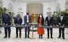 Isabel Díaz Ayuso, José Luis Martínez-Almeida y Miguel Ángel Sanz Castedo han sido los encargados de inaugurar el renovado hotel junto a Greg Liddell, Director General del hotel, James Riley, CEO de Mandarin Oriental Hotel Group y Pablo Bravo, consejero de Olayan Group en España
