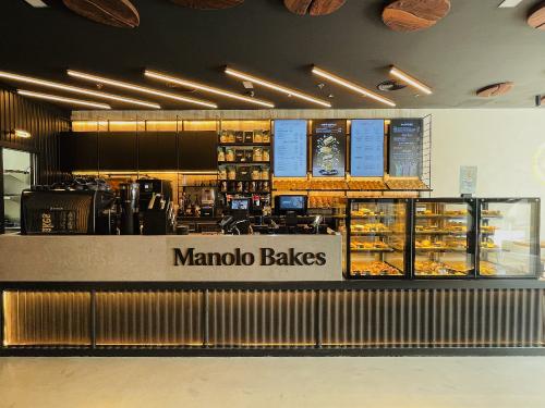 La compañía, que abrió su primer local en Valencia en 2020, amplia su presencia en esta zona con una nueva tienda ubicada en el Centro Comercial Bonaire, sumando un total de cuatro. Este espacio cuenta con una superficie de 74m² y un aforo de 25 personas. Manolo Bakes ofrece ya en este nuevo local sus reconocidos Manolitos y Palmitas, así como el resto de sus creaciones, colaboraciones especiales y su café de especialidad.