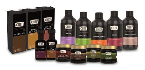 Los fondos naturales CHEF, con ingredientes 100% de origen natural, se caracterizan por haberse cocinado a fuego lento, hasta 12 horas antes del último paso de reducción, con el objetivo de conservar sabores intensos. Se presentan en 3 variedades: Demi-glace, fondo natural de ave y fondo natural de ternera.