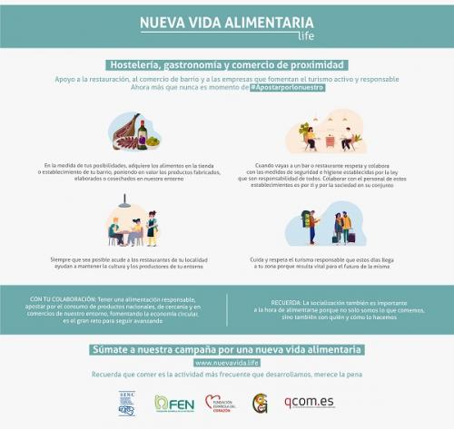 Nueva Vida a través de la Alimentación, (www.nuevavida.life) continúa su andadura apoyando a la restauración, al comercio de barrio y a las empresas que fomentan el turismo local activo y responsable, tan necesarios en nuestro país para generar economía y empleo en los próximos meses, para lo cual ha desarrollado un decálogo de buenas prácticas en apoyo de estos sectores, tan perjudicados durante la crisis sanitaria y que en estos momentos están en apuros.