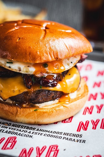 Y ya que vamos a ver lo bonito que está, ¿qué tal descubrir las novedades de la carta? Recién salida de las brasas, madera y humo está Bacon Egg Tower. Está inspirada en la burger más emblemática del restaurante Au Cheval con sede en Chicago y en NY desde hace un par de años, donde no deja de conquistar paladares. Y no es para menos, lleva: cheddar, bacon grueso ahumado, huevo frito, cebollino, salsa parmesano, pepinillos y cebolla roja picada, toda una interpretación de Pablo Colmenares, chef ejecutivo de la firma, con la esencia de NYB. Él mismo opina que se convertirá en la favorita de muchos: “quienes la prueben repetirán fijo”. Y en septiembre le dieron la bienvenida a Emily, basada en la icónica burger neoyorquina, que lleva una salsa con textura muy cremosa hecha a base de mantequilla ahumada y chiles coreanos asados, cebolla caramelizada, crujiente bacon ahumado y cheddar. Quienes hayan tenido la suerte de probarlas en Nueva York, sentirán la Gran Manzana a cada bocado; y quienes aún no las conozcan, viajaran a la ciudad de los rascacielos desde las direcciones de NYB saboreando su magia.