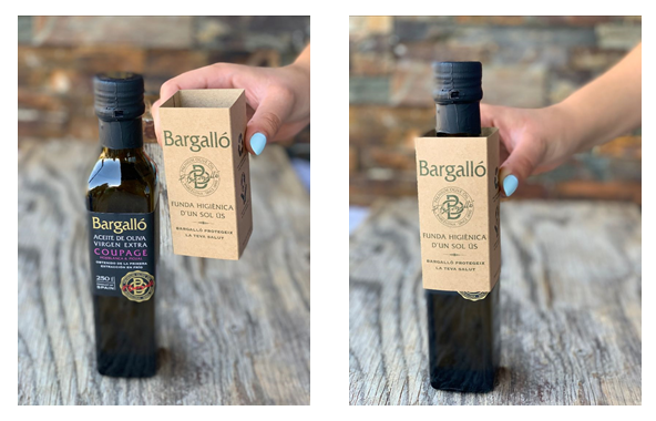 La apuesta de Olis Bargalló por la sostenibilidad se mantiene firme más que nunca, pese al coronavirus. Ante la normativa que empuja a los restauradores a usar las monodosis de aceite, formatos de plástico y de un solo uso, Olis Bargalló ha creado una alternativa más ecológica: fundas protectoras higiénicas de papel reciclado y de un solo uso. Con estos protectores, el restaurador podrá mantener en las mesas de sus establecimientos, y al servicio de sus comensales, los envases de aceite de oliva virgen extra de vidrio de 250 ml. Pero en cada servicio podrá cambiar estas fundas para mantener las normas de higiene y seguridad contra el COVID-19.