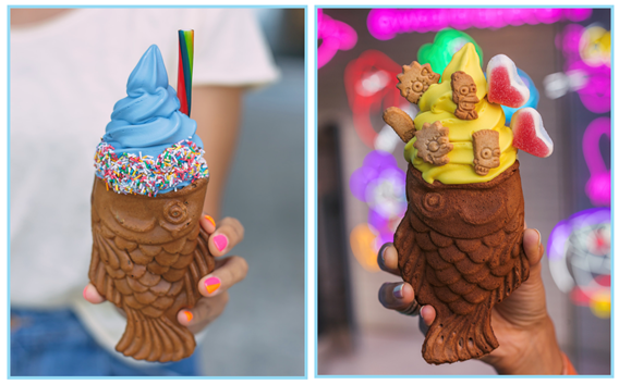 De esta manera, La Pecera® llega por primera vez a Abu Dhabi con sus taiyakis recién hechos. Su famoso bizcocho con forma de pez esponjoso por dentro y crujiente por fuera, estará disponible para rellenar con helado soft de yogur cremoso.