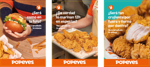 El spot parte del sentimiento intrínseco al ser humano de desconfianza ante los mensajes de las marcas y con él, Popeyes®, reta a los espectadores a verificar y comprobar por sí mismos que su oferta es única en el sector. Así mismo, la campaña cuenta también con publicidad exterior en circuitos de mupis y marquesinas, plan de social en Instagram y YouTube y campañas de programática. Todo ello bajo el mismo concepto creativo.
