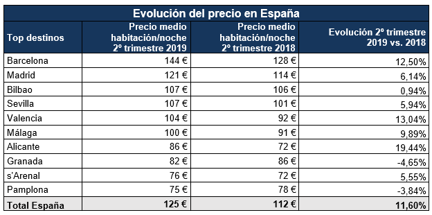 Según el informe “Hotel Price Radar”, el precio medio en España se situó en 125 € por noche.