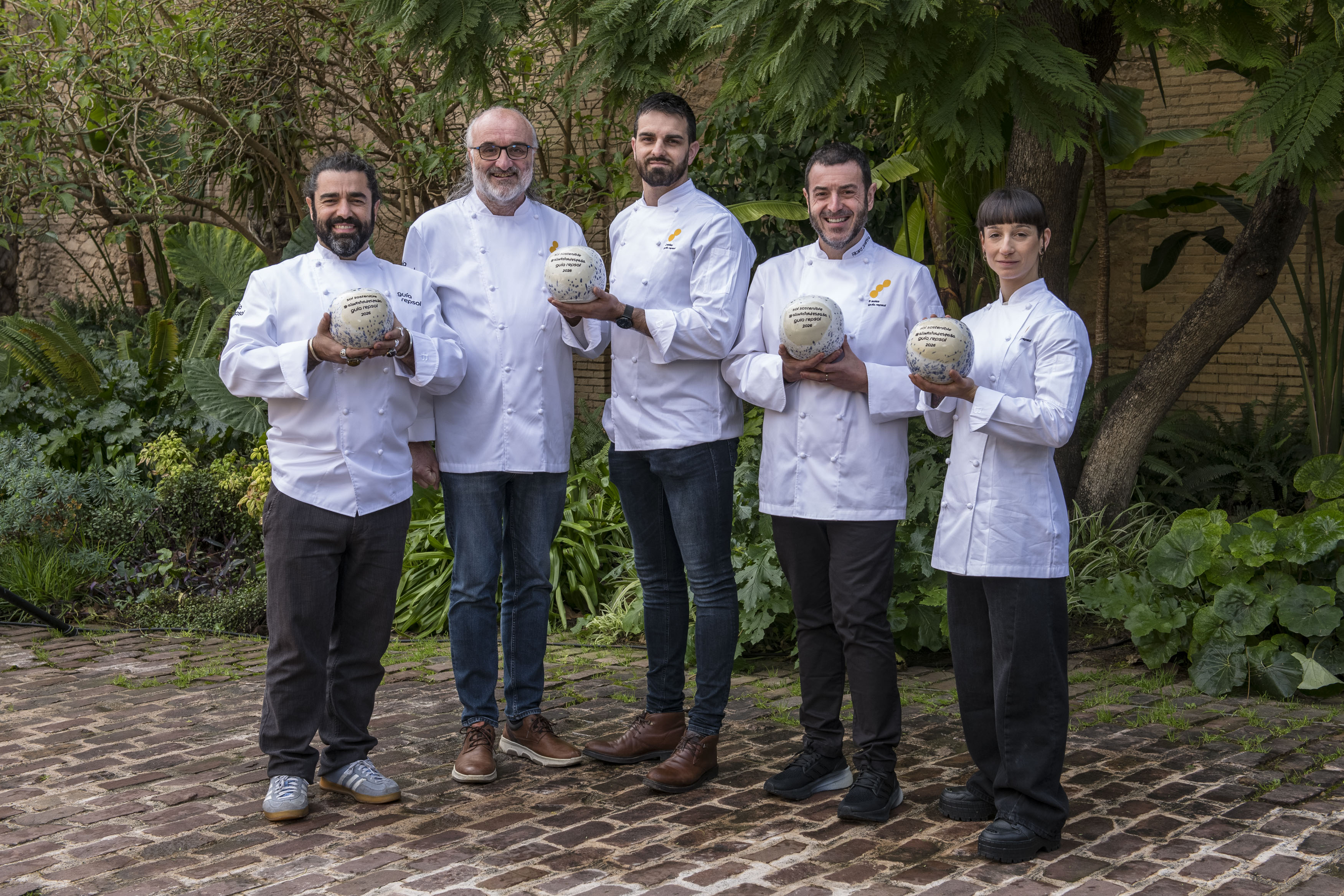 · Ricard Camarena, Carmen Sauch y Jeroni Castell, Iris y Bruno Jordán y Felipe Turell gestionan modelos en los que el cuidado por el entorno impacta en todas las fases del negocio y reciben este año su Sol Sostenible #AlimentosdEspaña. Guía Repsol y el Ministerio de Agricultura, Pesca y Alimentación se unen por sexto año consecutivo para premiar a cuatro cocinas comprometidas con un trabajo más respetuoso con el medio ambiente. · Los premios Sol Sostenible #AlimentosdEspaña 2026 destacan el compromiso con el desperdicio cero de ‘Ricard Camarena’ (València. 3 Soles Guía Repsol), la apuesta por el territorio de ‘Les Moles’ (Ulldecona, Tarragona. 2 Soles Guía Repsol), el diálogo con los productores de ‘Ansils’ (Anciles, Huesca. 1 Sol Guía Repsol) y la bioconstrucción del espacio de ‘Tramo’ (Madrid. Restaurante Guía Repsol), entre otros valores que han motivado la distinción. · Los restaurantes premiados se han dado a conocer este miércoles 4 de febrero en el jardín de Bombas Gens, en el que se mezclan más de 100 especies vegetales distintas y donde está ubicado ‘Ricard Camarena’ y el Centre d’Arts Digitals de València, de la mano de José Miguel Herrero, director general de Alimentación; y María Ritter, directora de Guía Repsol.