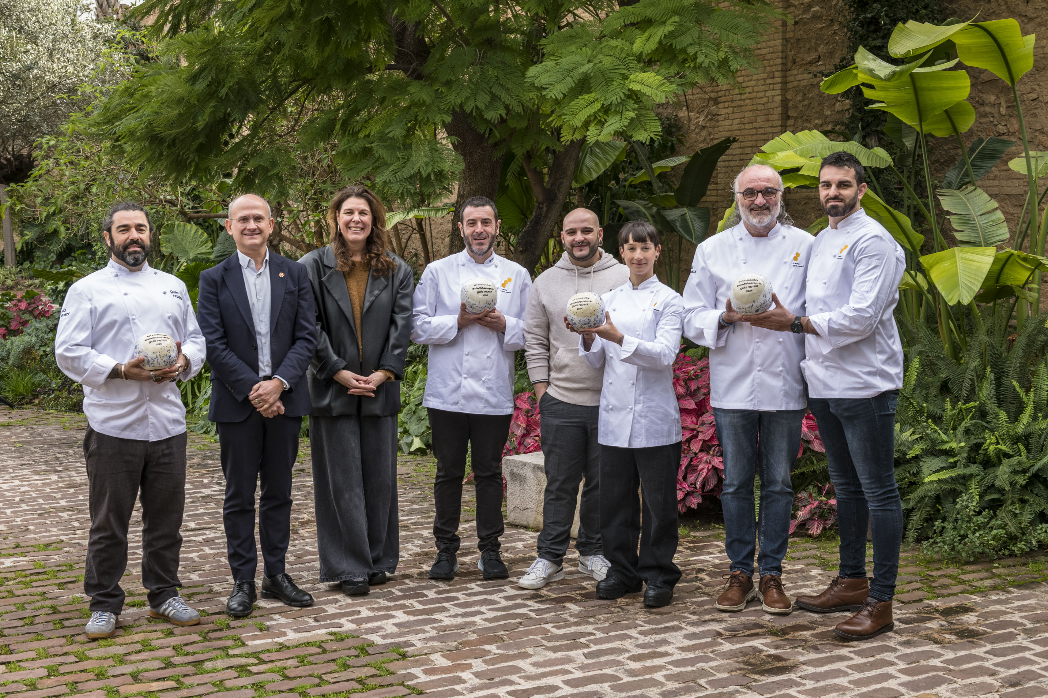 Los cuatro establecimientos se han reunido este miércoles 4 de febrero en València, en el jardín de Bombas Gens, la antigua fábrica rehabilitada donde se ubica el restaurante de ‘Ricard Camarena’ y el Centre d’Arts Digitals. Durante un acto presentado por la periodista Mariola Cubells, José Miguel Herrero Velasco, director general de Alimentación, y María Ritter, directora de Guía Repsol, han destacado la esencial labor de cada uno de los premiados y su capacidad de difundir las prácticas sostenibles a través de su propio ejemplo.