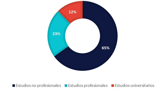 Dos de cada tres trabajadores no han completado estudios profesionales