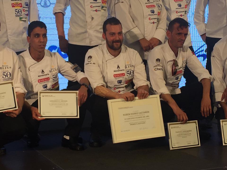 Rubén Osorio Castañón, chef del restaurante Ergo de Miranda de Ebro, (Burgos) y José David Fernández Portales, jefe de cocina del restaurante Pabellón, en el complejo Florida Retiro (Madrid) son el primer y segundo clasificados de la segunda semifinal del VII Concurso Cocinero del Año. Cristhian Illan Ramírez, del restaurante Workshop Del Cacique (Madrid) es el camarero vencedor de la segunda semifinal del III Concurso Camarero del Año.