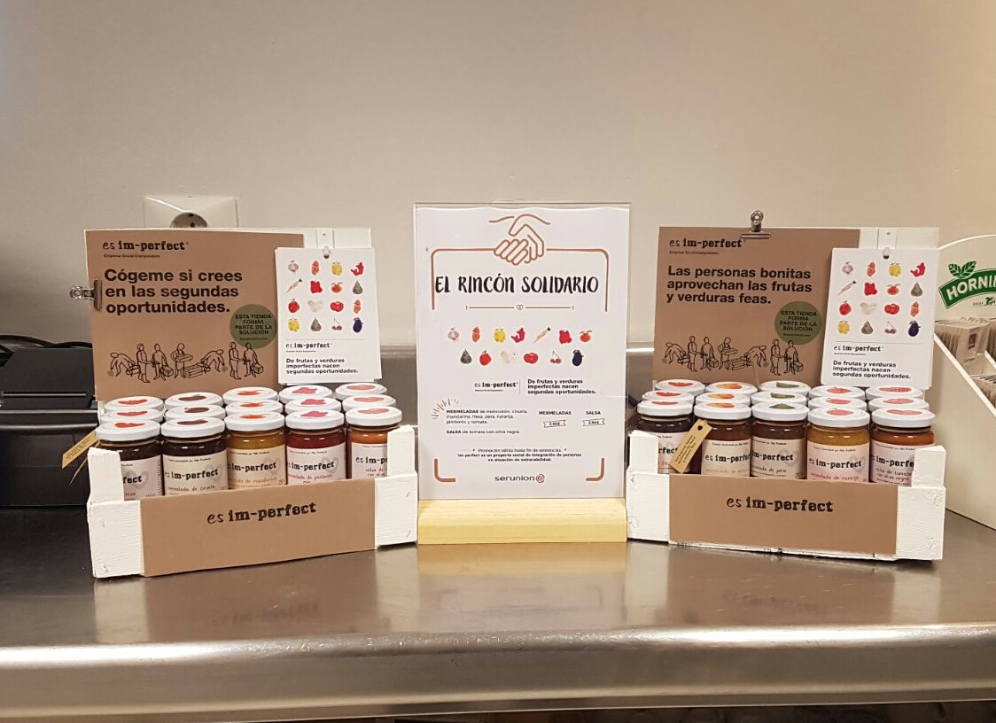 La compañía genera un nuevo espacio en las cafeterías denominado “El Rincón Solidario” . Se trata de un espacio solidario que da cabida a la comercialización de productos de entidades de ámbito social. Durante este mes, Serunion comercializa la gama de mermeladas y salsas Es Im-Perfect, un producto de alta calidad de la empresa social Espigoladors, que da salida alimentaria a frutas y verduras que no pueden ponerse a la venta por su estética poco comercial.