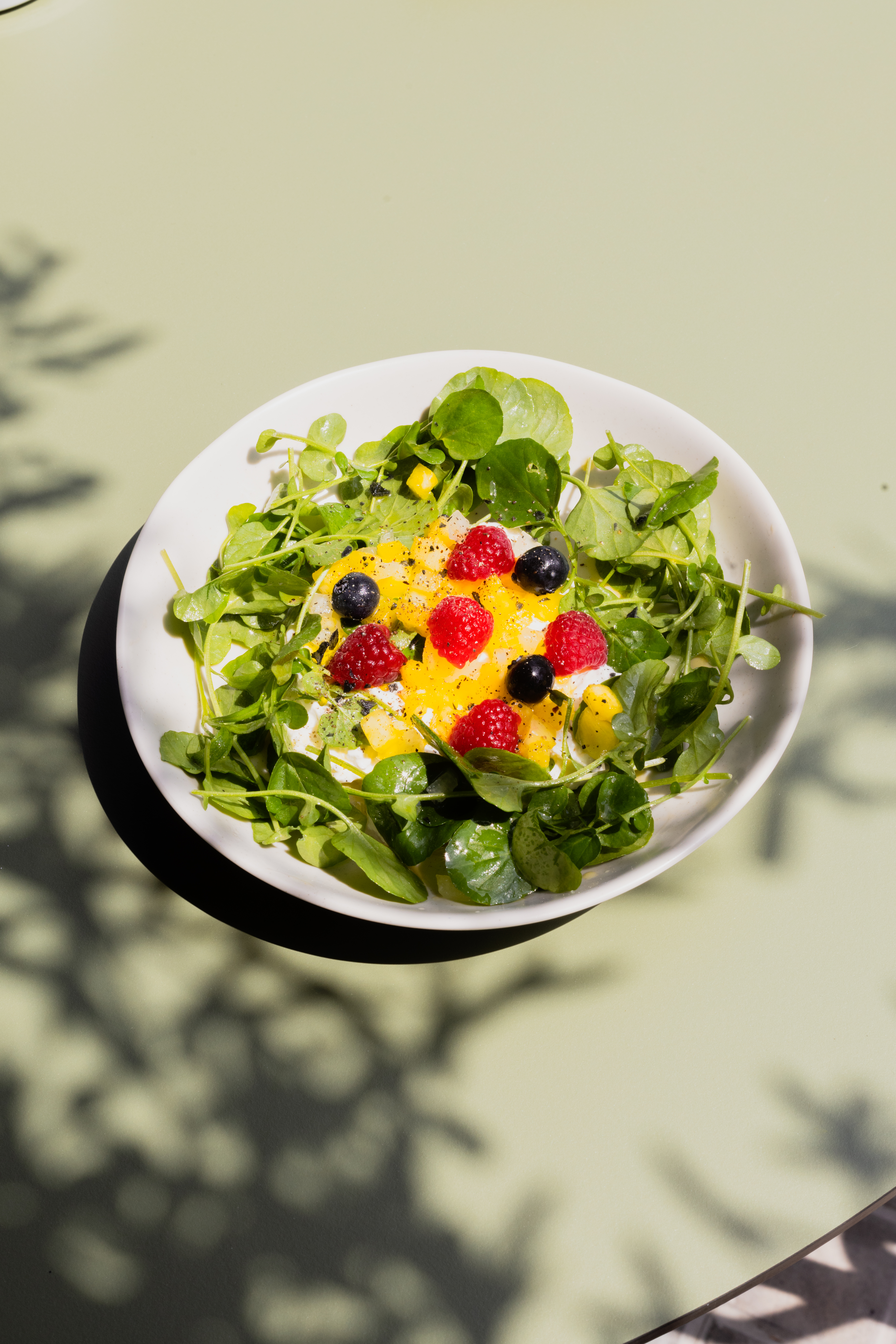 La amplia carta de Fauna Café recoge los favoritos de la cocina mediterránea con un toque rompedor. Destacan las sorprendentes propuestas de desayunos, como el brioche de ricotta, arándanos y lima o el croissant con huevos revueltos y pepino, acompañados de zumos 100% orgánicos, como el