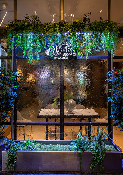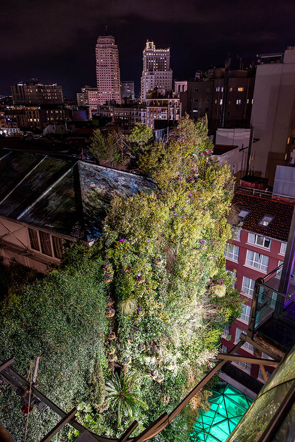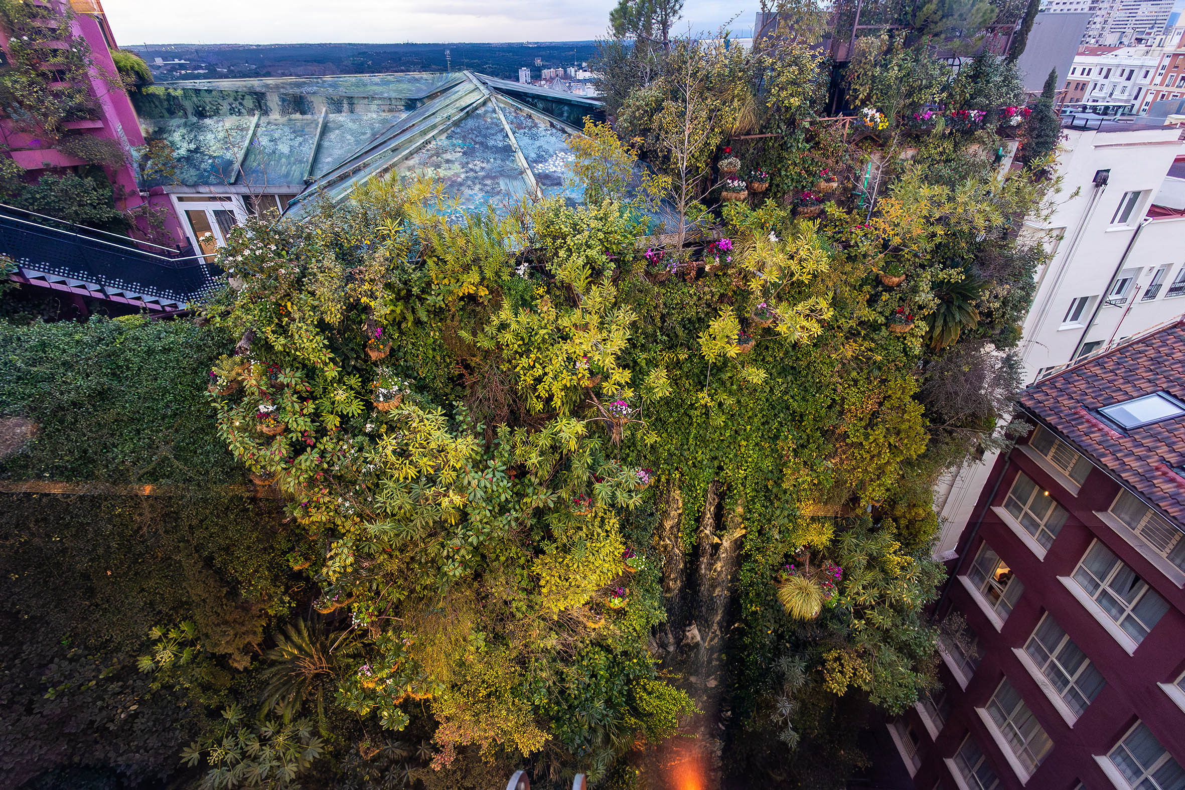 Este renovado oasis en las alturas combina la vitalidad de Madrid con una experiencia gastronómica y de coctelería en armonía con la naturaleza, porque es un espacio que respira frescura en un ambiente diseñado para relajarse y desconectar. Y es que el entorno no puede ser más propicio. Su enorme jardín colgante -uno de los más grandes de Europa y Récord Guinness del mundo en 2011-, con 1.000 m2 de superficie, más de 2.500 plantas de 260 especies vegetales y una cascada de circuito cerrado de 20 metros de altura, no solo es la columna vertebral de las siete plantas del hotel que se avista tanto desde el restaurante como de gran parte de las habitaciones, sino también un ecosistema que funciona como un pulmón urbano, un muro verde que reducirá la huella de carbono en 1.250 toneladas de CO2 en los próximos dos años. A través de Greenwall strategy está implementando iniciativas clave para consolidarse como un modelo de turismo sostenible