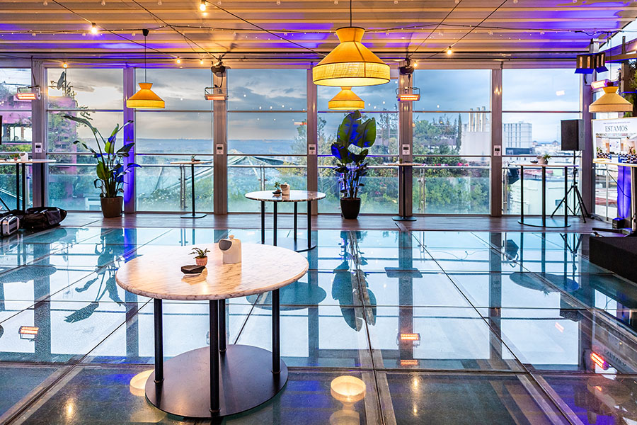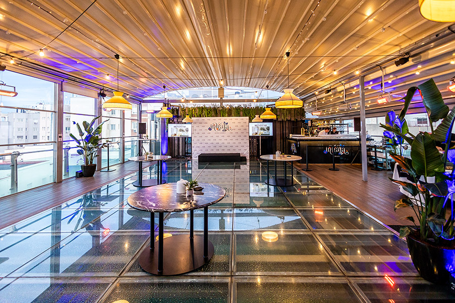 Inhala Terraza cuenta con una ubicación privilegiada, muy cerca de la Gran Vía y de la oferta cultural y de ocio que ofrece: teatros, tiendas de moda, enclaves turísticos de interés… por lo que es el lugar perfecto para desconectar y retomar fuerzas durante un día de turismo, una jornada de compras o para relajarse antes o después de asistir a un espectáculo. Las impresionantes vistas al skyline madrileño también convierten a este idílico lugar con tres espacios -la zona principal climatizada con techo móvil que se modula según la climatología; una terraza superior a cielo abierto con un mirador 360º; y el ‘Salón Cielo’, una sala cerrada con vistas al Palacio Real donde se ofrecen almuerzos en verano- en un lugar único donde disfrutar de unos atardeceres mágicos, siendo una de las pocas terrazas de la capital que tienen una vista panorámica de 360º. Desde aquí se puede contemplar el Madrid de los Austrias, la Casa de Campo, los edificios de la Plaza de España… ¿subimos a coger aire?