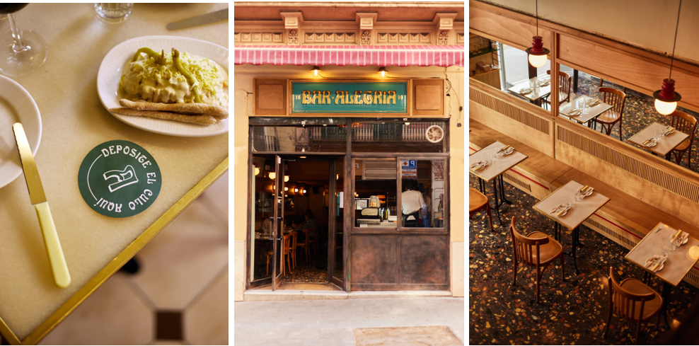 El proyecto Bar Alegría comenzó en 2019, cuando Tomás Abellán redescubrió un local modernista de 1899 en la esquina de Gran Vía con Comte Borrell, en Sant Antoni.