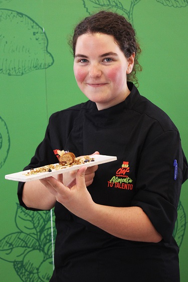 Eugenia Lorente, de origen valenciano (La Font de la Figuera), y alumna del IES Cap de L’Aljub ha conseguido erigirse como vencedora con la tapa “Deconstrucción de gazpacho manchego”.