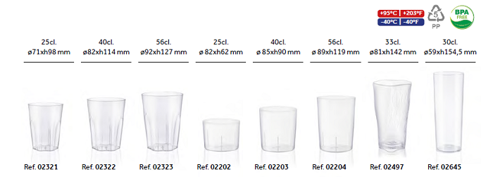 Los vasos de Araven son idóneos para uso colectivo en festivales, piscinas o establecimientos de alojamientos turísticos donde se recomienda el uso de vajillas de materiales reutilizables. Araven ofrece hasta ocho referencias distintas, con diversos tamaños, capacidades –de 25cl a 56 cl- y diseños. También artículos con las mismas características como bandejas, vajilla, copas y jarras.