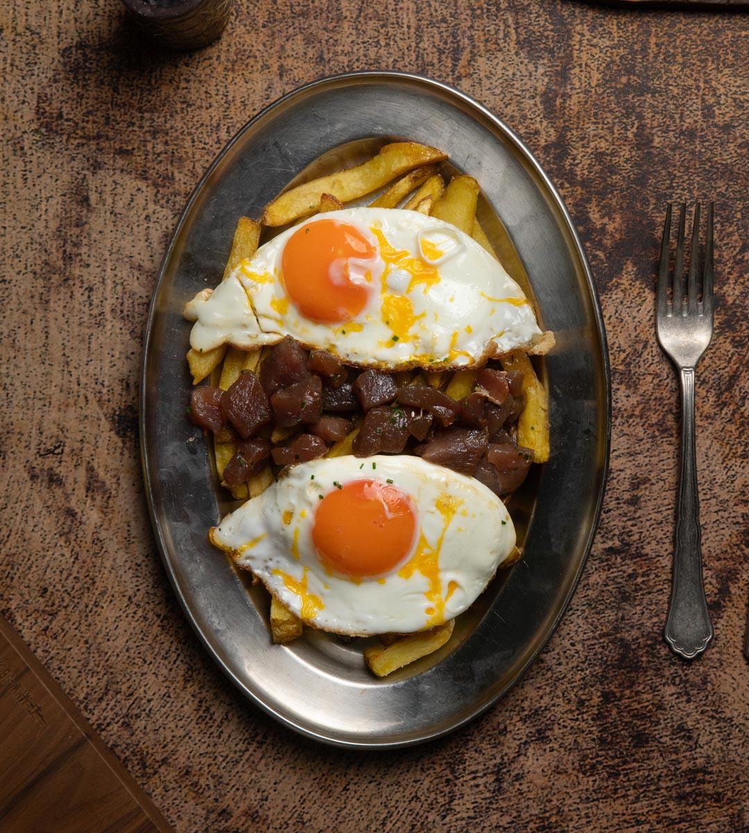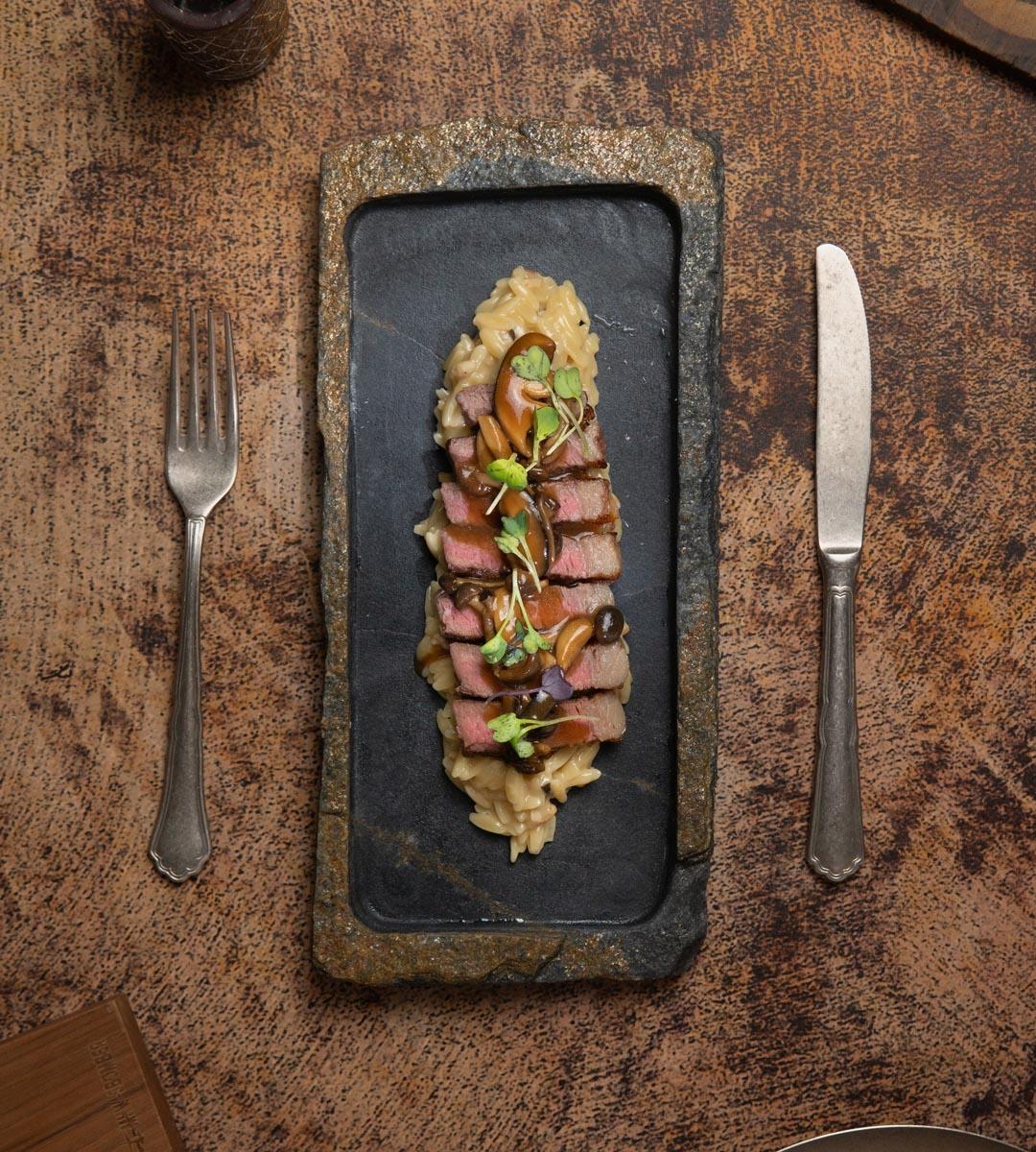 Entre la propuesta gastronómica que se puede encontrar en el menú, destacan platos como Montecristo nº4, puritos crujientes con costilla a baja temperatura y ceniza de sésamo; el Hummus casero con miel de caña, pipas de calabaza, queso feta y granada; el Cuscús Shawarma, con cordero a baja temperatura y hummus de aguacate; o las Costillas Masái, laqueadas y asadas.