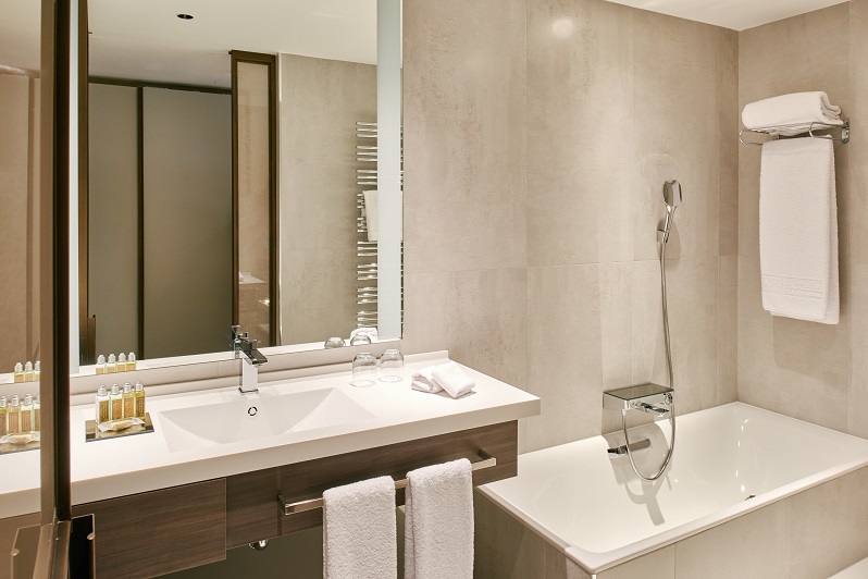 Emplazamiento sostenible: el hotel se encuentra en una zona previamente desarrollada, un centro urbano de alta densidad con una gran conectividad mediante transporte público. Además, cuenta con plazas reservadas para vehículos compartidos y de bajas emisiones y puntos de recarga para vehículos eléctricos.