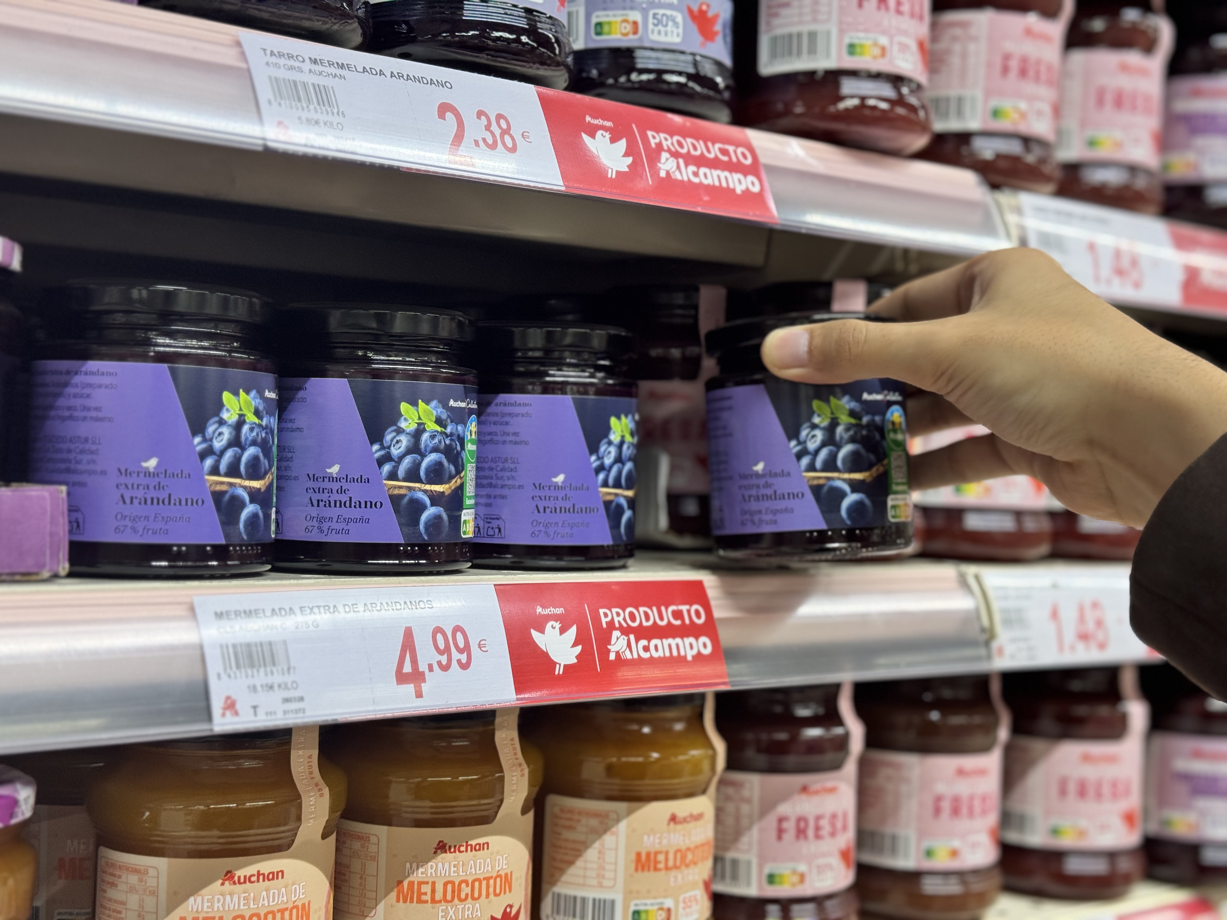 Por otro, una mermelada extra de arándano con alto contenido en fruta, comercializada dentro de la gama gourmet Auchan Collection y también bajo el sello Cultivamos lo Bueno. Se presenta en un tarro de vidrio reciclable de 275 gramos y tiene un precio de 4,99 euros. Ambas referencias estarán disponibles en tiendas seleccionadas.
