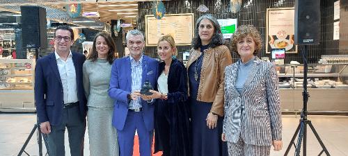 de izquiera a derecha : Director de Ventas, Jesús López, Directora General de Comercio, Consumo y Servicios, Marta Nieto Novo,Director de Alcampo La Vega, Francisco Martín Bayo, Alcaldesa de Alcobendas, Rocío García Alcántara,Directora territotial de Alc