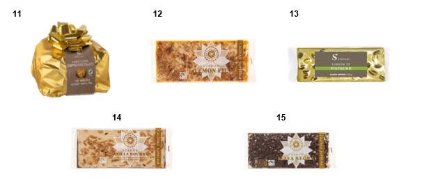 15. Turrón selva negra: 250 gr. Delicioso turrón de chocolate con sabor de tarta selva negra. Disponible próximamente.