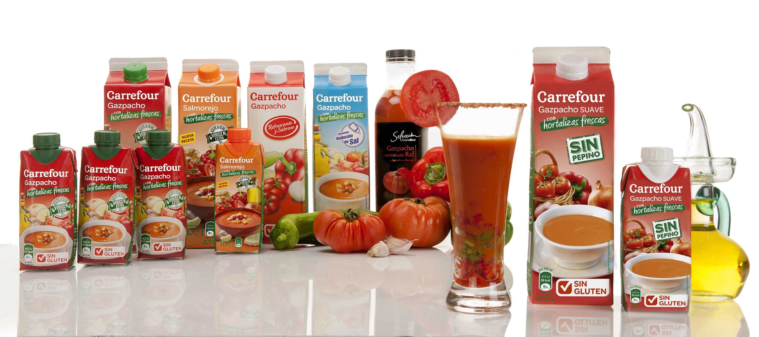 Carrefour ofrece una gama de gazpachos sin gluten y elaborados en España