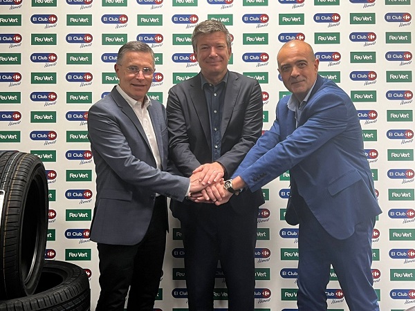 Alexandre de Palmas, director ejecutivo de Carrefour España, Thierry Sinquin, presidente del Grupo Feu Vert y Manuel Estévez, CEO de Feu Vert en España, han firmado un acuerdo para que los socios de El Club Carrefour puedan disfrutar de una acumulación en su ChequeAhorro del 5% del importe de la revisión de sus vehículos así como de la mano de obra en el montaje de neumáticos. A esta ventaja se añadirán otras ofertas adicionales que se irán desarrollando a lo largo del acuerdo, en línea con el objetivo de Carrefour de contribuir al ahorro de sus clientes.