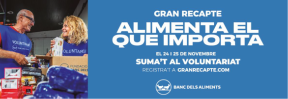 La iniciativa, impulsada por los Bancos de Alimentos de Cataluña, llega a su 15ª edición bajo el lema “Alimenta lo que importa” y tiene el objetivo de ayudar a las familias en situación de vulnerabilidad a cubrir sus déficits nutricionales por medio de la donación voluntaria de alimentos de primera necesidad, y también de sensibilizar a la población sobre la realidad de la pobreza alimentaria en Cataluña.