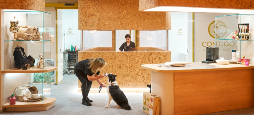 Contigo Cuidados es un nuevo concepto en el cuidado de las mascotas que ofrece el más completo servicio de estética, pero también se ocupa de su bienestar físico y emocional. Además, su equipo ha desarrollado su propia línea de productos de alimentación e higiene. El centro estético e higiénico ofrece más de 35 servicios diferentes para mascotas y se encuentra ubicado en la primera planta de El Corte Inglés de La Castellana (Madrid).