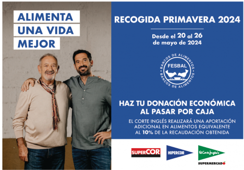El Grupo El Corte Inglés se une de nuevo a la Campaña “Recogida Primavera” de Alimentos, a favor de los 54 Bancos asociados a la Federación Española de Bancos de Alimentos (FESBAL), que se celebrará del 20 al 26 de mayo en todos los establecimientos de la cadena en España, y que se realiza a beneficio de las personas más desfavorecidas, en riesgo de exclusión social, para que puedan acceder a una alimentación digna.