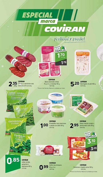 En el folleto promocional que se ha lanzado desde la cooperativa, válido entre el 23 de enero y el 3 de febrero, se incluyen un total de 82 productos de marca Covirán pertenecientes a distintas familias o grupos de alimentos, todos ellos con la mejor relación calidad precio, incluso en algunos casos con descuentos importantes para los clientes con tarjeta del Club Familia.