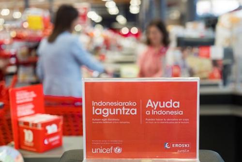 5 de octubre de 2018EROSKI, en coordinación con UNICEF, pone en marcha en todos sus supermercados e hipermercados una campaña para recaudar fondos en favor de la población damnificada por el tsunami en Indonesia. En sus establecimientos los clientes podrán realizar un donativo voluntario para ayudar a cubrir las...