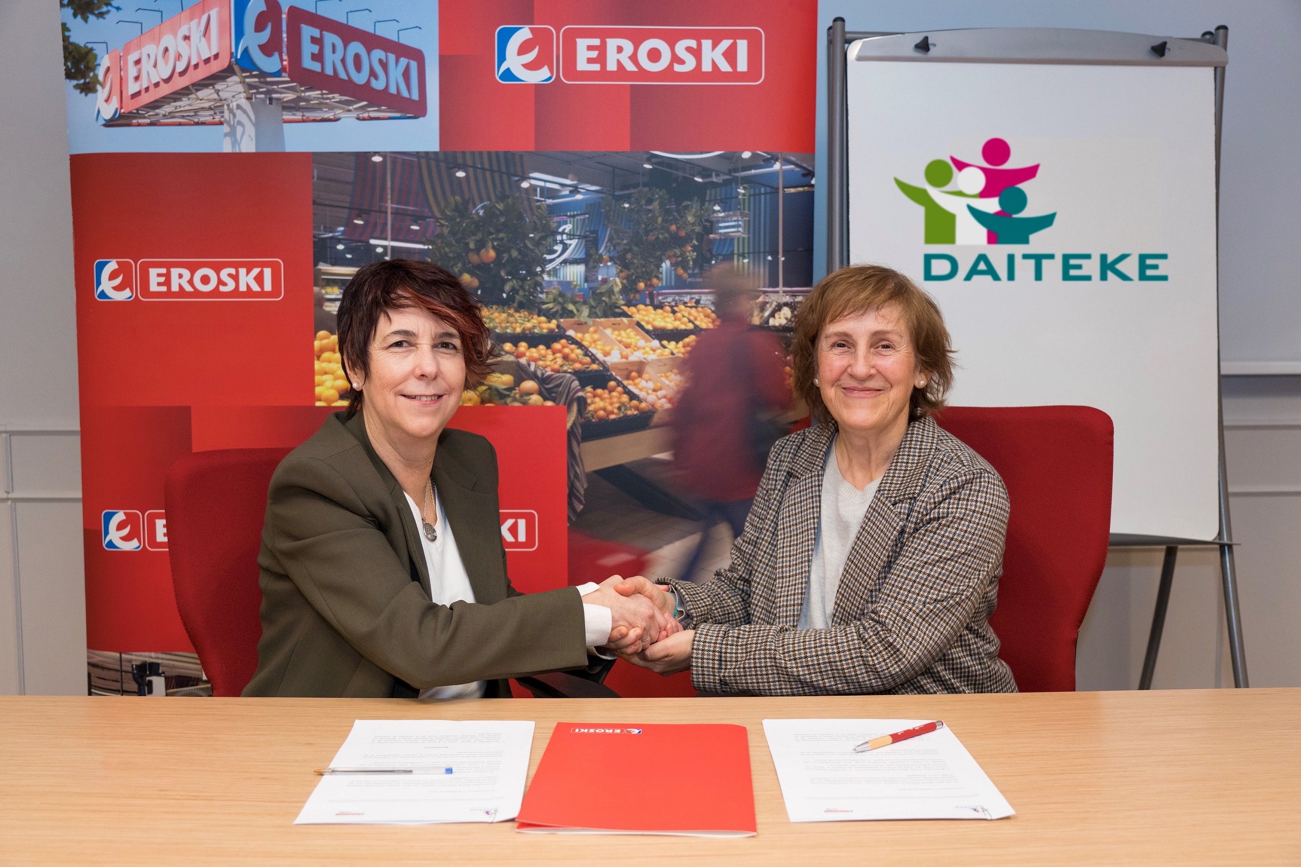 EROSKI y la consultoría social Daiteke han firmado un acuerdo de colaboración para promover la inserción laboral de las mujeres víctimas de violencia de género. El convenio ha sido rubricado por la directora de Daiteke, Maite Arsuaga, y la responsable del Observatorio de Igualdad de EROSKI, Marta Carazo.