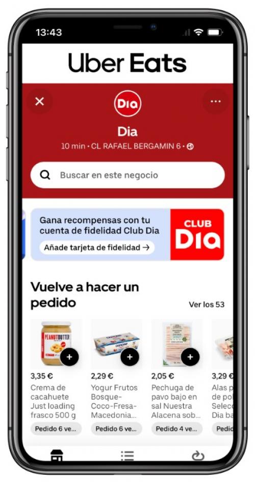 Dia y Uber Eats dan un paso más en su colaboración y, desde ahora, los clientes del Club Dia, el programa de fidelización de la compañía, podrán disfrutar de descuentos exclusivos del Club cuando realicen compras en sus tiendas a través de la plataforma de delivery.