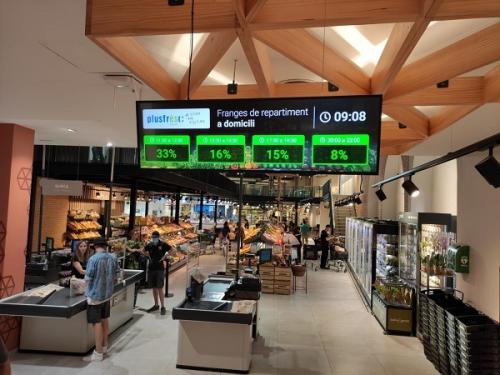 Plusfresc incorpora pantallas en la entrada de sus tiendas de Lleida para optimizar la compra a domicilio