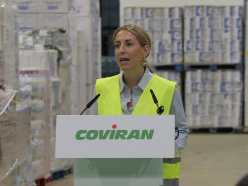 La presidenta de Extremadura, María Guardiola, visita la plataforma de distribución de Coviran en Mérida