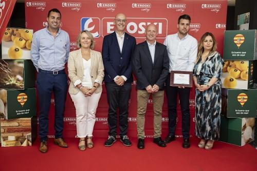 El premio ha sido recogido por el responsable de Grandes Cuentas de Airesano, Pablo García y el director comercial del Grupo Naturuel, Alejandro Garcés. En el acto de entrega del premio han participado también el director de Relaciones Institucionales de EROSKI, Jose Antonio Yela; la directora Comercial de Productos Locales de EROSKI, Asun Bastida; y la directora de EROSKI en Aragón, Pilar Cristóbal, junto a destacados representantes de las empresas agroalimentarias aragonesas.