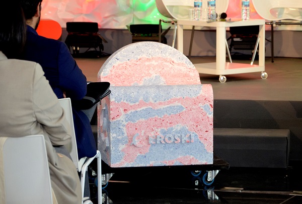 Ambas entidades, que vienen colaborando desde hace años en proyectos de economía circular, afianzan su común apuesta por la sostenibilidad medioambiental con iniciativas innovadoras como ésta, que consiste en darle una segunda vida a los uniformes del personal de las 281 tiendas quecomponen la red comercial de Vegalsa-Eroski, transformándolos en muebles que pueden tener diferentes usos.