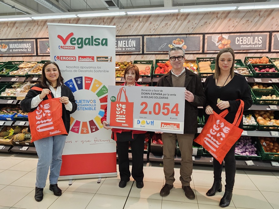 25 de febrero de 2026La compañía gallega de distribución alimentaria Vegalsa-Eroski ha hecho entrega de dos cheques por un valor total de 3.533 euros a causas sociales, de los cuales 1.479 euros se han destinado a la Fundación Meniños, a través de su enseña Eroski, y 2.054 euros a DOWN ESPAÑA, mediante la enseña...