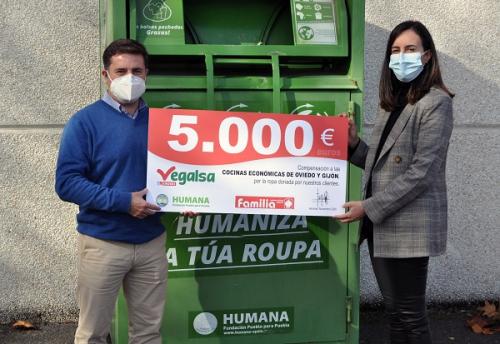 Vegalsa-Eroski dona con la colaboración de Humana 5.000 euros a las Cocinas Económicas de Oviedo y Gijón gracias a la economía circular