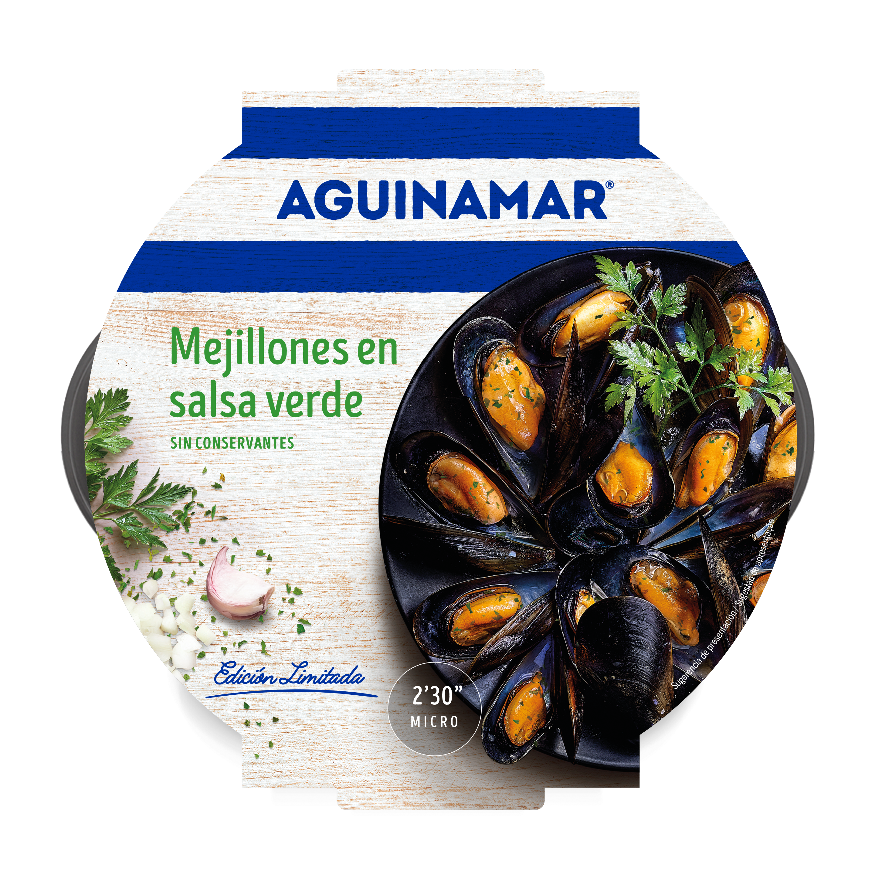 Como propuesta más tradicional, Aguinamar lanza sus nuevos mejillones en salsa verde, elaborados con una receta de ajo y perejil que realza el sabor del mar. El producto está listo para calentar y servir, facilitando su consumo durante las reuniones navideñas.