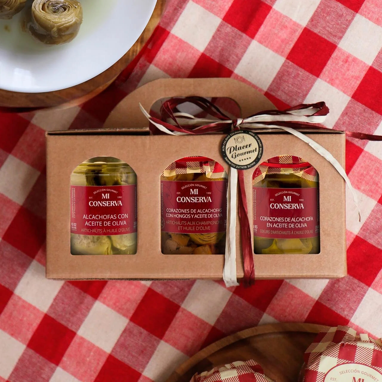 • 6 conservas vegetales sin aditivos: alcachofas, escalivada, cebolletas, crema de alcachofa, salsa de tomate y del Piquillo.