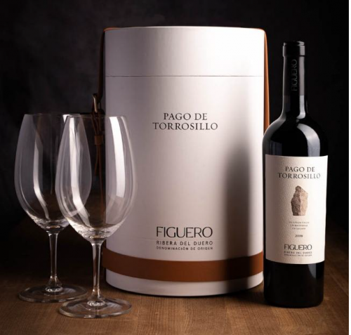 Una botella de PAGO DE TORROSILLO, añada 2019. 100% Tinto Fino. Procedente de un Viñedo Singular de 1,79 ha. plantado a mano en 1950 por su fundador, José María García. Conformando un paisaje único en el pueblo de La Horra, aportándole frescura, equilibrio y una acidez natural.