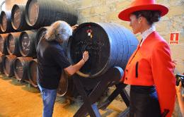 El cantaor jerezano firma una bota de la andana que conmemora el Tío Pepe Festival, que este año celebra su tercera edición.